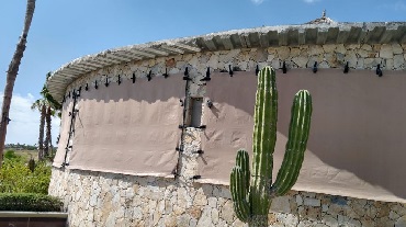 Las protecciones Anticiclonic Fabric se pueden construir en diferentes estilos según el estuche. Resistentes a los rayos UV para que su protección contra huracanes nunca se deteriore por la exposición al sol. Es liviano y fácil de implementar por una persona.