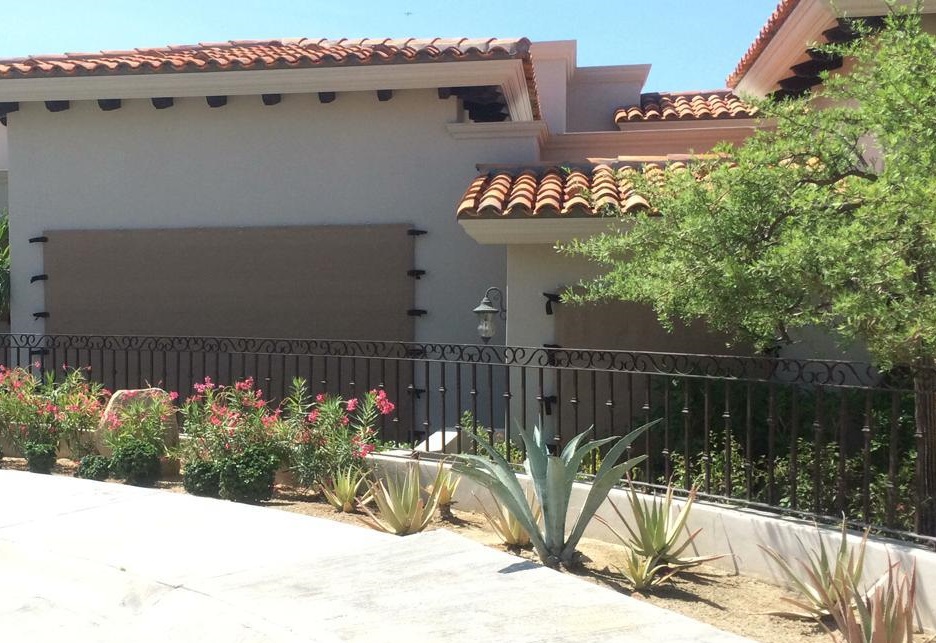 Cortinas para tormentas Hurricane Shutter, translúcidas incluso con protección completa contra huracanes colocada para permitir que la luz ingrese a su hogar o negocio.